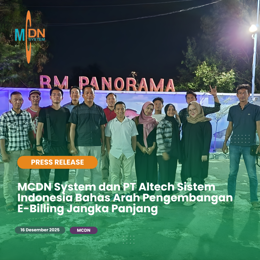MCDN System dan PT Altech Sistem Indonesia Bahas Arah Pengembangan E-Billing Jangka Panjang Indramayu, 16 Desember 2025 — MCDN System menerima kunjungan resmi dari PT Altech Sistem Indonesia di Rumah Makan Panorama, Indramayu, pada Senin, 15 Desember 2025. Ini menjadi bagian dari langkah strategis MCDN System dalam melakukan evaluasi serta pengembangan sistem e-billing guna mendukung […]