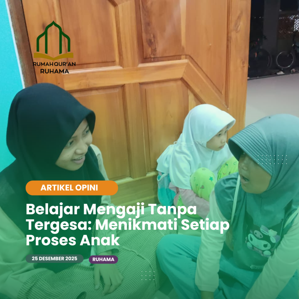 Belajar Mengaji Tanpa Tergesa: Menikmati Setiap Proses Anak Belajar mengaji merupakan perjalanan yang tidak dapat disamakan antara satu anak dengan anak lainnya. Setiap anak memiliki kemampuan, kesiapan, dan ritme belajar yang berbeda. Oleh karena itu, proses belajar Al-Qur’an perlu dijalani dengan kesabaran dan ketenangan, tanpa tergesa-gesa. Menikmati setiap tahapan menjadi kunci agar anak tumbuh dengan […]