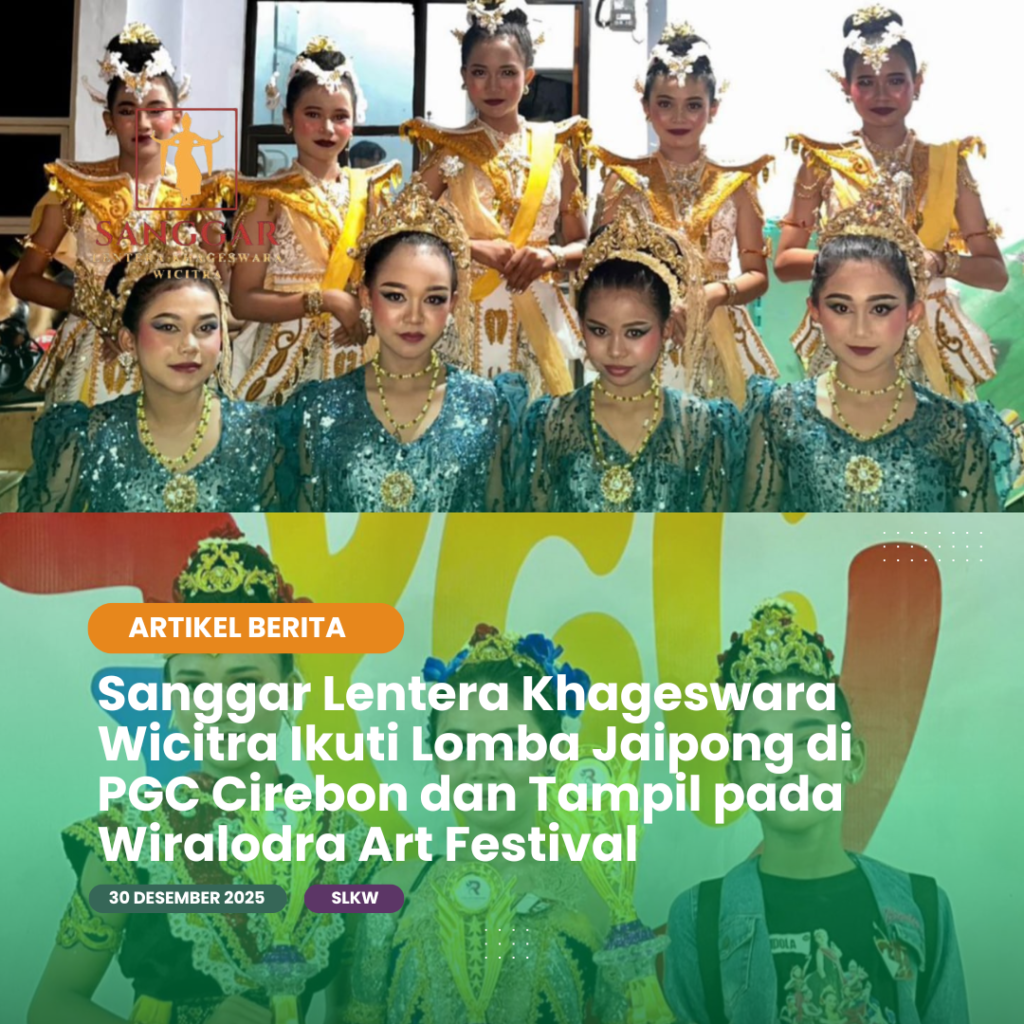 Sanggar Lentera Khageswara Wicitra Ikuti Lomba Jaipong di PGC Cirebon dan Tampil pada Wiralodra Art Festival Sanggar Lentera Khageswara Wicitra kembali meraih prestasi dengan mengikuti Lomba Jaipong dan Jaipongan yang digelar di PGC Cirebon. Pada ajang tersebut, sanggar mengirimkan tiga penari, yakni Faresha Nurjanah, Putri Kusumawangi, dan Eliza Syakinatun Zahwa, yang tampil secara perorangan membawakan […]