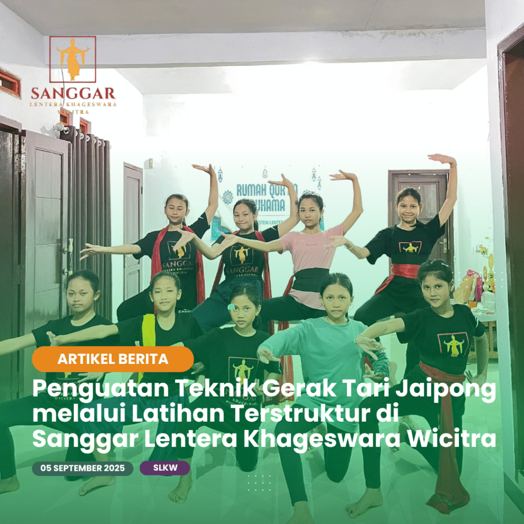 Sanggar Lentera Khageswara Wicitra Tekankan Ketelitian Teknik untuk Tingkatkan Kualitas Tarian Anak Didik Sanggar Lentera Khageswara Wicitra kembali menegaskan komitmennya dalam meningkatkan mutu pembinaan seni tari melalui latihan yang berfokus pada ketelitian teknik gerak. Dalam setiap sesi, pelatih menekankan bahwa penguasaan detail teknik merupakan fondasi penting untuk menghasilkan penampilan tari yang berkualitas dan memiliki karakter […]