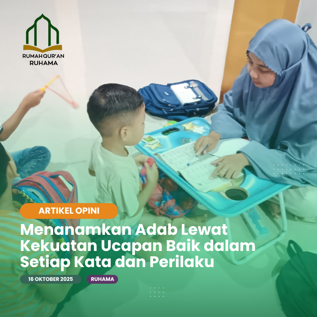 Melalui suasana yang penuh kasih dan teladan yang konsisten, anak-anak di Rumah Qur’an Ruhama tumbuh dengan pemahaman bahwa berbicara baik adalah bagian dari ibadah. Mereka belajar bahwa satu kata yang diucapkan dengan niat baik dapat menjadi doa, sementara satu kata yang diucapkan tanpa pikir dapat melukai.