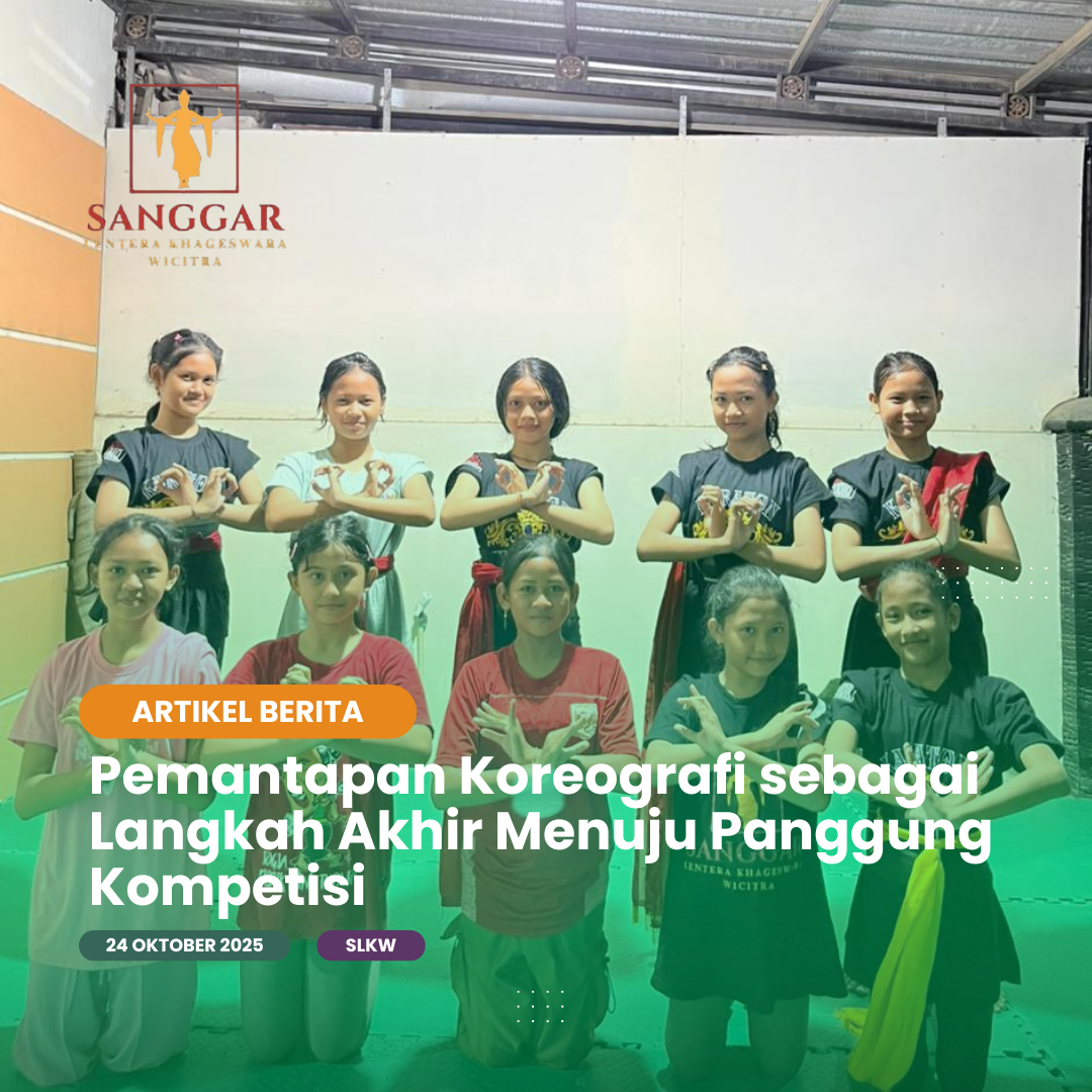 Menjelang pelaksanaan kompetisi tingkat provinsi, sanggar tari kembali memperkuat kualitas penampilan melalui sesi pemantapan koreografi. Kegiatan ini difokuskan pada penyelarasan gerak, ketepatan teknik, serta penguatan ekspresi sebagai unsur penting dalam penilaian panggung. Proses pemantapan dilakukan secara intensif agar seluruh penari mampu menampilkan koreografi secara utuh dan berkarakter.